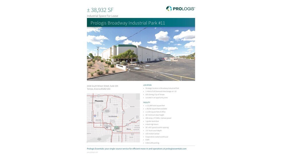 Strategic location in Broadway Industrial Park, 1 mile to Full Diamond Interchange on I-10, GID Zoning, City of Tempe, Located in an opportunity zone