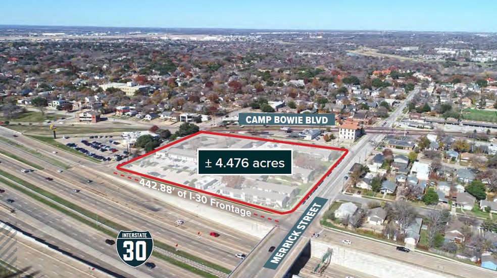 The 4.476 acre property (West Fort Worth Land Parcel) is located at 5214 & 5216 West Freeway, 5225 Birchman Avenue and 2658 Merrick Street, Fort Worth 76107 Rare opportunity to develop large urban, infill site. Surrounded by growing and affluent neighborhoods Favorable zoning for mixed-use developments, multifamily, office, hotel and neighborhood commercial Highly visible with immediate access to I-30 and Camp Bowie Road.