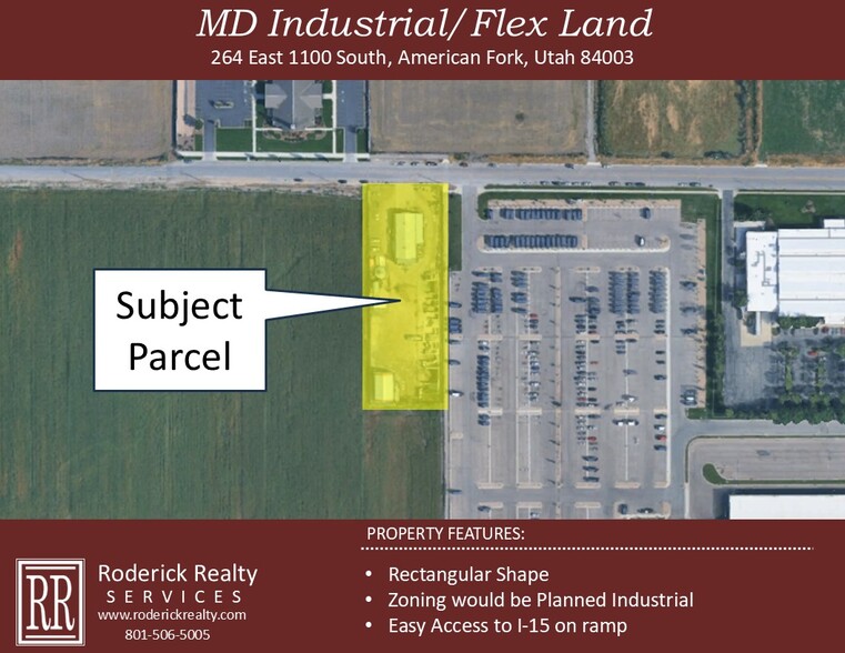 This parcel provides excellent and easy access off the 500 East Exit in American Fork. This lot offers phenomenal flexibility for either outside storage or an owner user that would need a small flex building and outside storage.