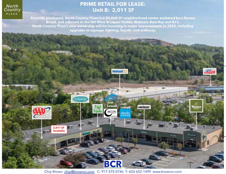 Neighborhood center with best in class local ownership. Anchored by Panera Bread and Verizon store.. Adjacent to NH Wine & Liquor Outlet and Walmart and across street from BJs and Best Buy.