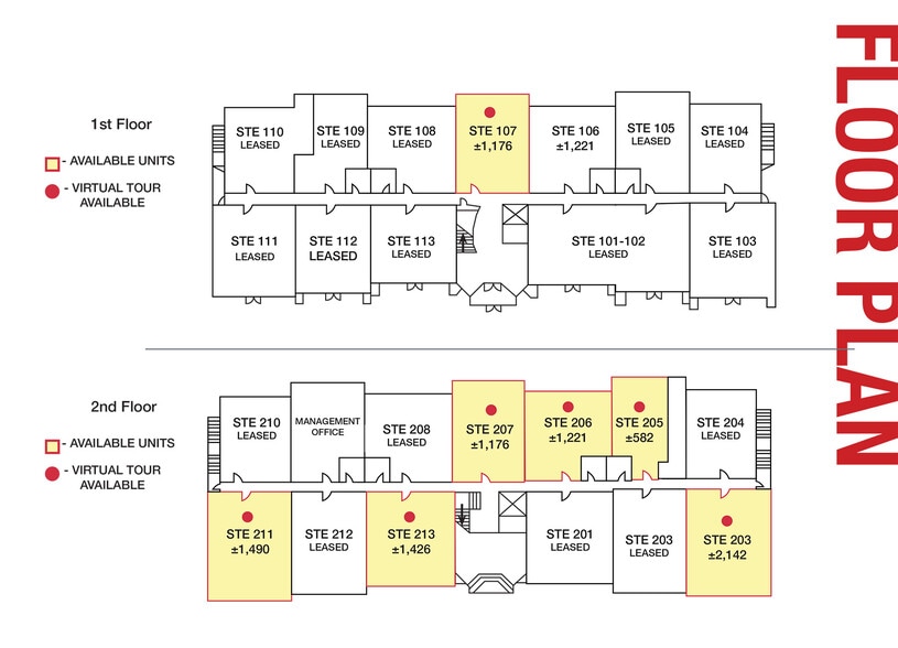 | 1st Floor, Ste 107 | 1,176 SF | Negotiable | $24.56 CAD/SF/YR $2.05 CAD/SF/MO $28,882 CAD/YR $2,407 CAD/MO | Office | - | Now |