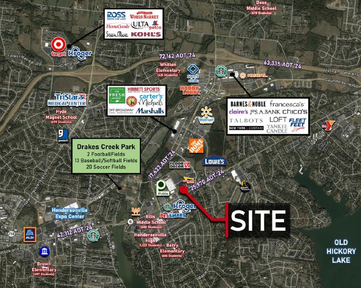 Nearby traffic generators include Publix, Kroger, Lowe's, PetSmart, Office Depot, Walgreens, Hendersonville High School a new Raising Canes, new Starbucks and a future In-N-Out Burger (one of the first handful of locations in the Eastern US for In-N-Out)