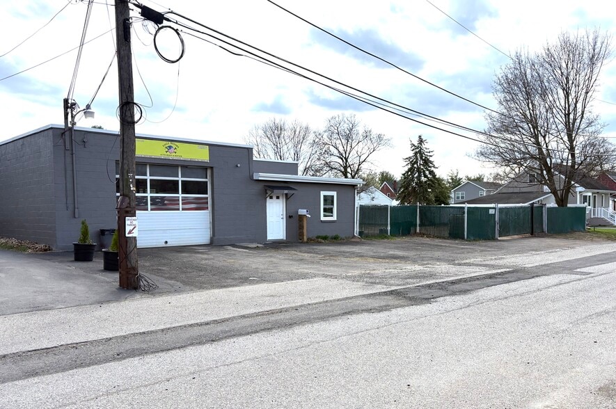 2664 SF Industrial Building. Formerly operated as a auto repair and auto body shop, this property is perfect for a contractor searching for shop space or indoor parking of vehicles and equipment. The shop can fit five vehicles. Small office space. Windows have been replaced and the bathroom renovated. Cinderblock construction with 3-10' drive in doors. Clear ceiling height is 12 ft. Oil heat in the shop, electric in the office.