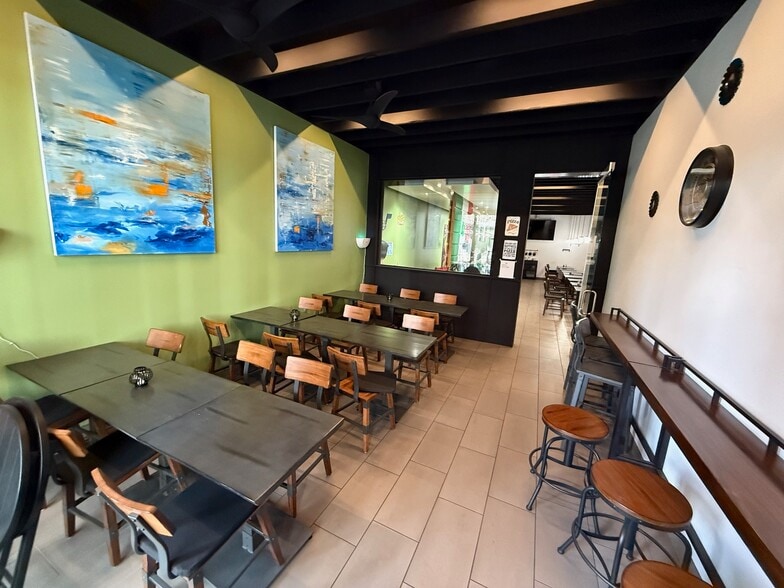 Prime restaurant space with all furniture, fixtures, and equipment in place. This location boasts a fantastic Main Street spot, providing high visibility and foot traffic. The lease includes basement space with ample storage, a walk-in cooler, and a walk-in freezer. Additionally, there is the potential to install a hood and grease trap, making it suitable for a variety of culinary ventures. The operable storefront and patio space on Main Street creates an inviting atmosphere for patrons.