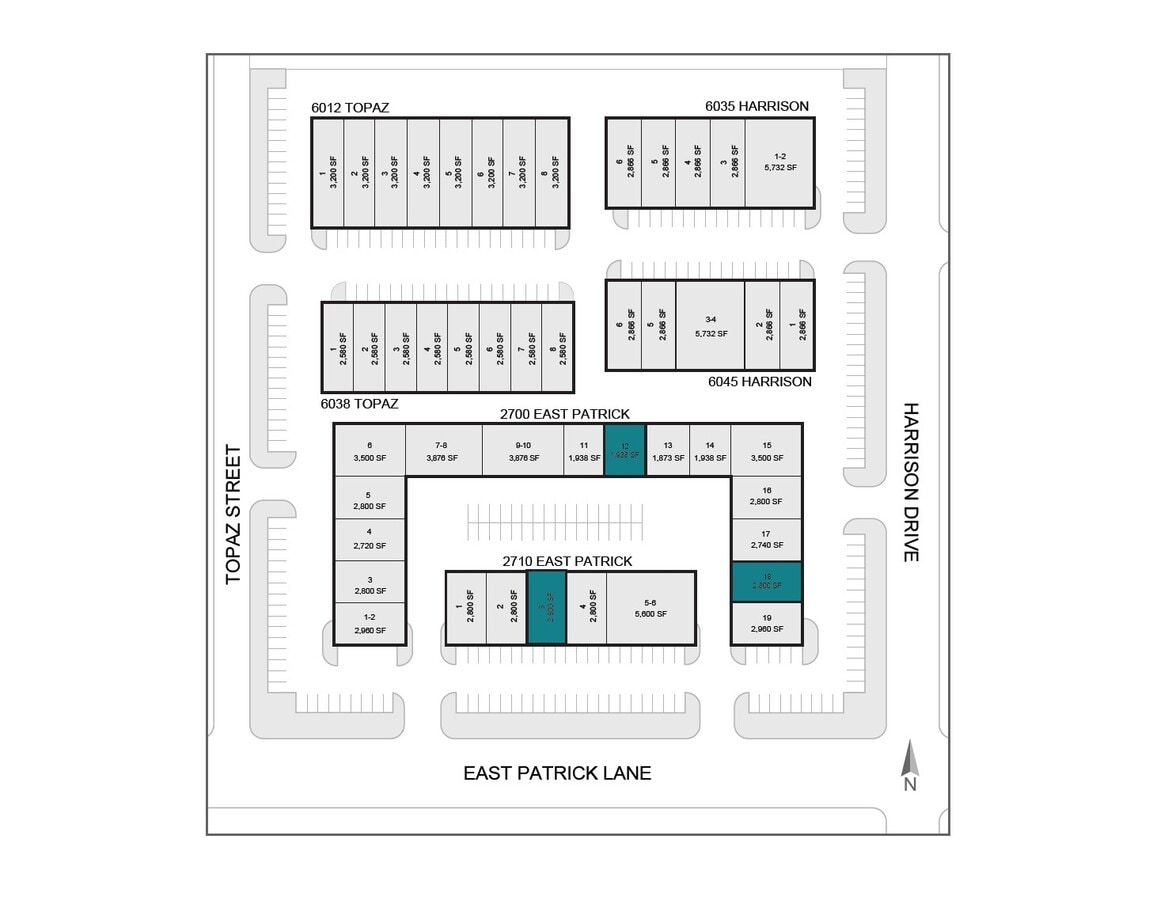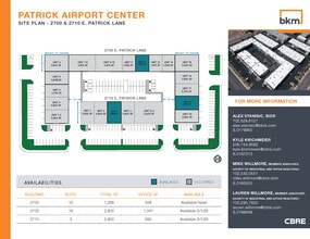 Patrick Airport Center is located East of McCarran International Airport and is 5 minutes from the Las Vegas Strip. The property is close to all major freeways and several retail amenities, including Walmart, Lowes and Office Depot. For more information or to view the units please contact Alex Stanisic at 702-528-6127 or Kyle Kirchmeier at 702-369-4862. - Located just North of Sunset Road between Eastern Avenue and Pecos Road - 142,451 SF project on 8.51 acres - 1,938 SF - 2,800 SF Units Available - Fully built-out & move-in ready units from 1,873 SF - Prime airport location - Grade-level truck loading - 120/208v, 3-phase power - Column spacing at 35’x45’ - 20’ minimum clear height - Single story office/warehouse spaces - Fluorescent Lighting & Skylight in Warehouse - MD Light Industrial zoning - Evap-cooled warehouse - 100% HVAC in some units - 387 parking spaces (2.72:1000) - Fire sprinklers at .21 per 1,500 SF