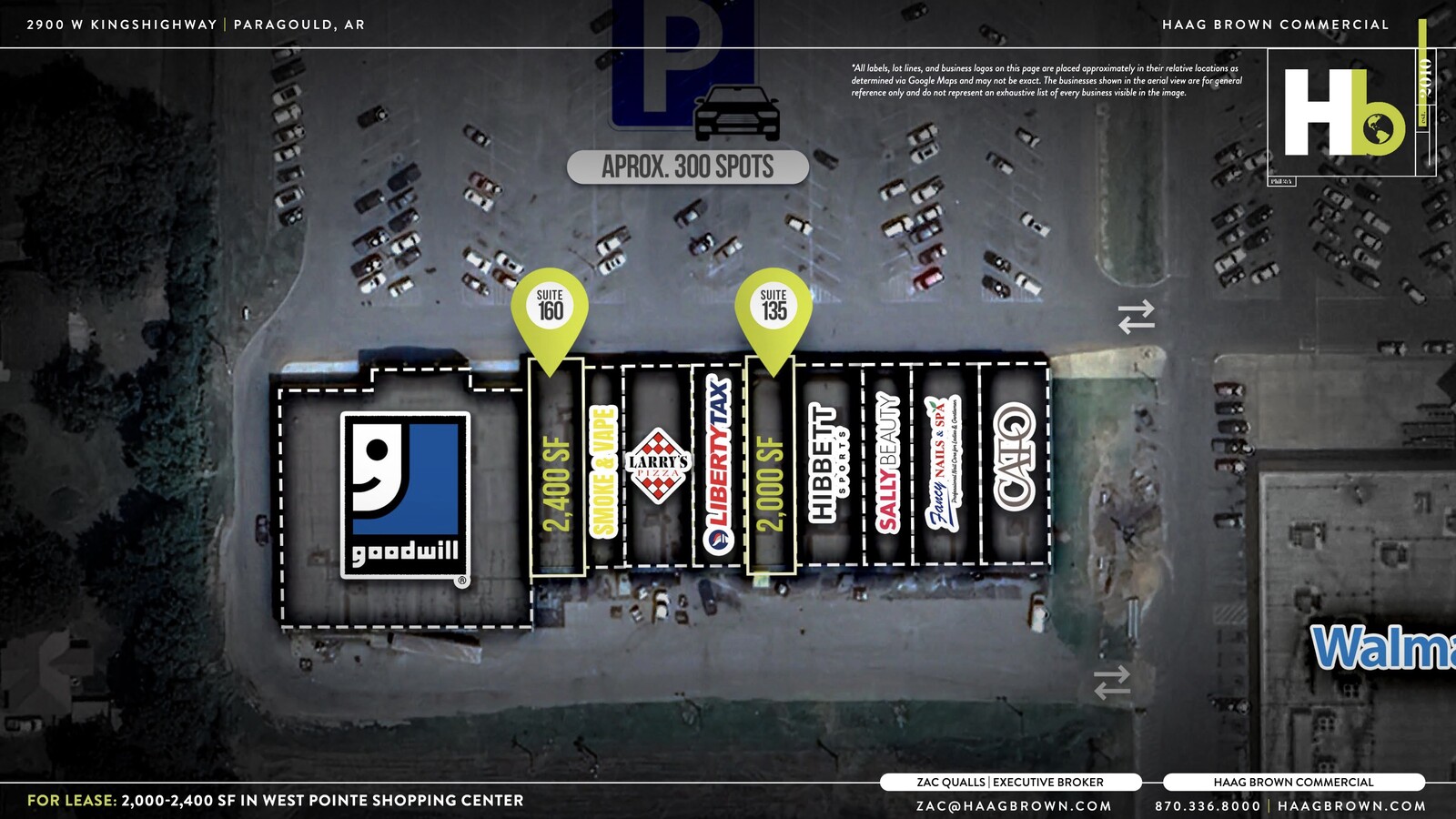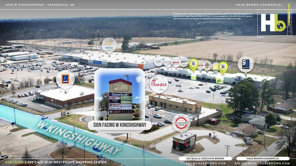 Haag Brown is excited to offer a very rare opportunity to be part of the strong West Pointe Shopping Center, which is a Wal-Mart shadowed property located in Paragould, Arkansas, a thriving city just 20 miles north of Jonesboro, Arkansas. This shopping center is known for being filled with numerous national and regional tenants such as Goodwill, Cato’s, Hibbett Sports, PetSmart, AT&T, and more. West Pointe Shopping Center is situated in the center of Paragould’s most dominant retail district along the heavily trafficked US 412 (West Kingshighway), lending it exposure to 20,300 cars per day. All major retail and restaurant players are within a one mile radius of the site and include Chikfila (brand new construction), Belk, Lowe's, Dollar Tree, Five Below, Aldi, Wendy’s, Freddy's Frozen Custard & Steakburgers, 7 Brew Coffee, Chili’s, Zaxby’s, KFC, Taco Bell, Waffle House, and, of course, the adjoining Wal-Mart Supercenter. Only 2 suites are available in the entire 40,000+ square foot center. Suite 135, which was formerly occupied by GameStop and adjacent to Hibbett Sports, containing 2,000 square feet, and Suite 160, located beside the super popular Goodwill store, containing 2,400 square feet.