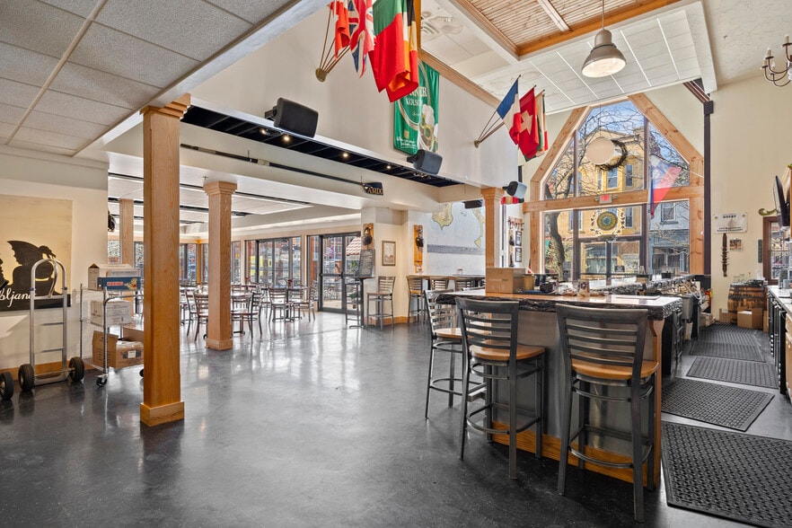 The property offers additional flexibility with a lower level that can support a private dining concept, lounge, or speakeasy style use, complemented by a grand staircase entrance along West 28th. A newer elevator provides efficient access between all levels, supporting both ADA compliance and back of house operations. The building also features two large walk-in coolers, a mezzanine level with balcony seating, and a sizable outdoor patio. Existing infrastructure includes brewing equipment and a secondary kitchen opportunity in the lower level with a hood already roughed in, allowing for multiple operational layouts.