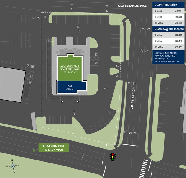 - Signalized corner location on Lebanon Pike, a major arterial into the heart of Nashville, with 34,000+ vehicles per day