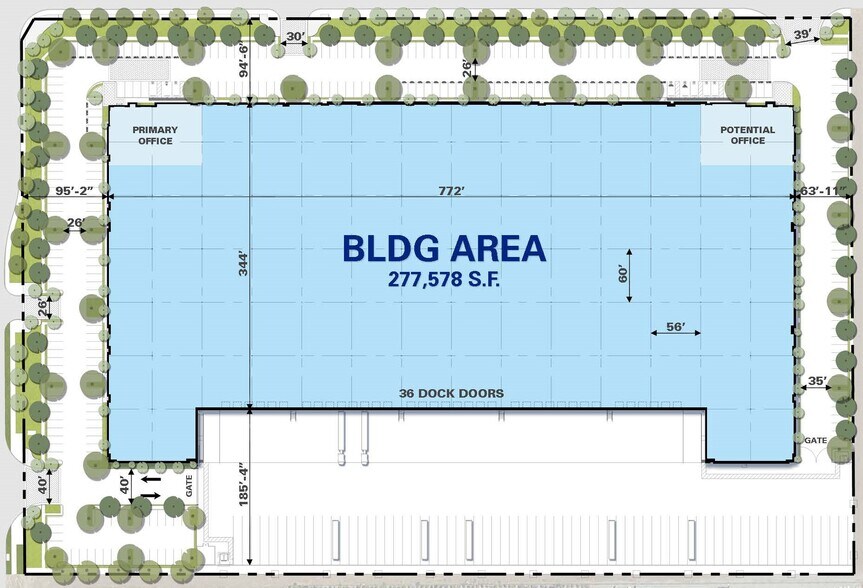 - 36 dock high with levelers on every other door and 2 drive in doors