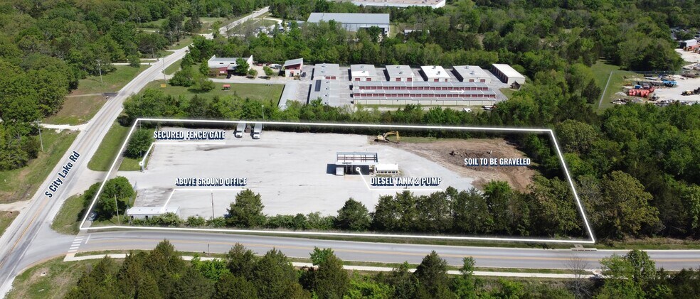 The property comprises approximately 2.87 acres located along S City Lake Road, approximately 3.5 miles from Interstate 49. It includes a gated perimeter with fencing and an above-ground office structure. A diesel pump and tank are installed on-site. The parcel includes a prepared gravel area for operational use. The site is situated within Fayetteville’s industrial corridor and provides convenient access to major highways and regional transit routes.