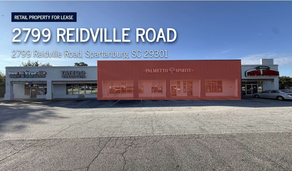 ositioned at a signalized corner along one of Spartanburg’s most active commercial corridors, 2799 Reidville Road offers a high-visibility retail leasing opportunity in a dynamic and growing trade area. This multi-tenant retail center features ±10,600 SF of total building area, with ±4,000 SF currently available for lease. The property is ideally suited for retail, service, or food and beverage users seeking strong traffic exposure and proximity to major national retailers. The site benefits from excellent access to I-26 and is surrounded by a dense mix of residential neighborhoods and commercial activity. Nearby anchors include Food Lion (0.6 miles), Target (1.8 miles), Lowe’s (2.4 miles), and Westgate Mall (2.8 miles), drawing consistent consumer traffic throughout the day. Ample on-site parking and a prominent corner location enhance visibility and customer convenience.