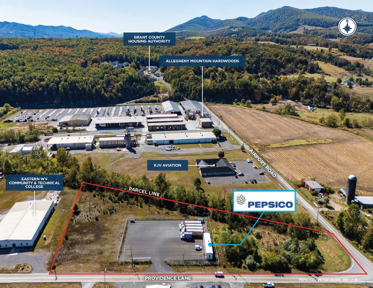 Cushman & Wakefield, Inc. and Century Realty, LLC are pleased to offer for sale a 950 SF industrial building in Petersburg, WV leased to Bottling Group, LLC, a subsidiary of PepsiCo, Inc.. The original 10 year lease to Bottling Group commenced April 1, 2024 and has an 8 year 3 month remaining lease term. Petersburg is located in the Potomac Highlands region which is in the eastern panhandle of West Virginia. The region’s economy has a diverse mix of defense research and manufacturing, wood products manufacturing, food production, and tourism.