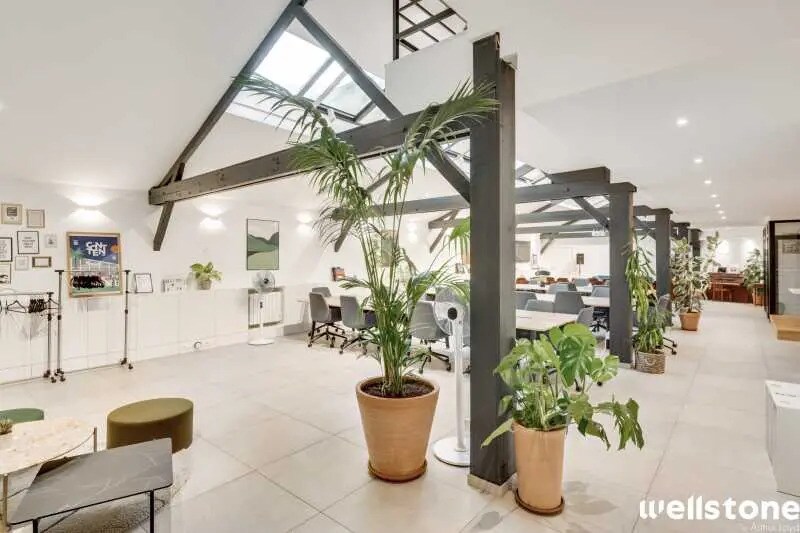 Near Place de la Nation, Wellstone offers 389m2 of office space for rent, spread over the ground floor and mezzanine. This former printing house, featuring an outdoor terrace for exclusive use, is organised into open spaces and partitioned offices, accommodating up to 55 workstations. These offices are ideal for companies in the communication, digital, and marketing sectors. The premises are in perfect condition, very bright, and can accommodate up to 55 workstations. The ground floor includes: - 1 large open space - 1 lounge - 1 equipped kitchen - 3 phone booths - 1 storage area The mezzanine includes: - 4 meeting rooms/offices - 2 work areas There is a small outdoor terrace for exclusive use and a very high ceiling. There is also the possibility to transform the offices into a conference venue with seating for 80 - 100 people. Ground floor area: 389 m².