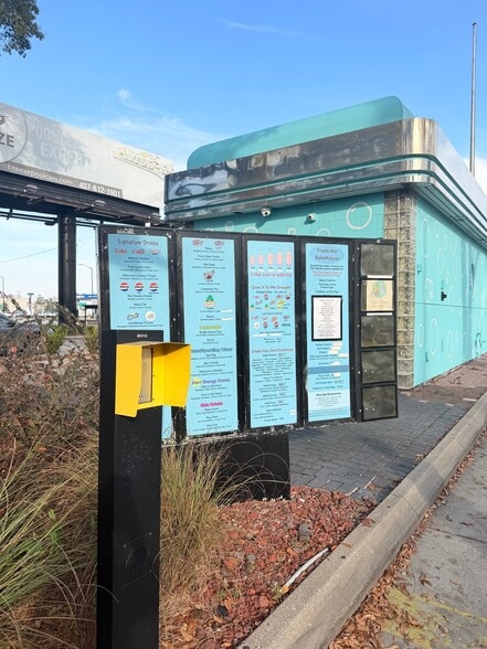 Peaceful open floor building with non enclosed rooms. Was previously used for a hair salon. The front door faces 192 (E Vine St) and the parking lot of the drive-thru restaurant "Your Happy Place". The designated parking lot is accessible from Bay Street.