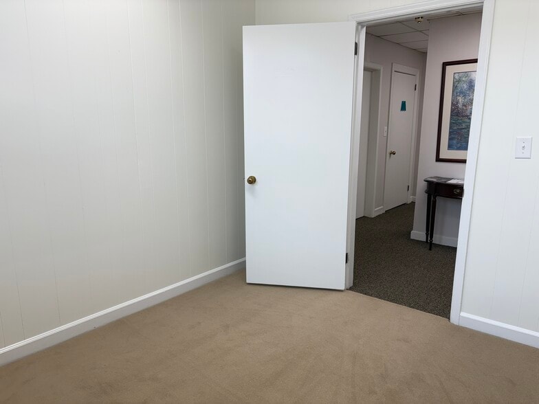 One furnished (or unfurnished) 132sf private office is available. Includes use of reception/sitting area, men's and ladies restrooms and small kitchenette area with sink, coffee makers, small refrigerator and microwave. $500/month furnished, $400/month unfurnished.
