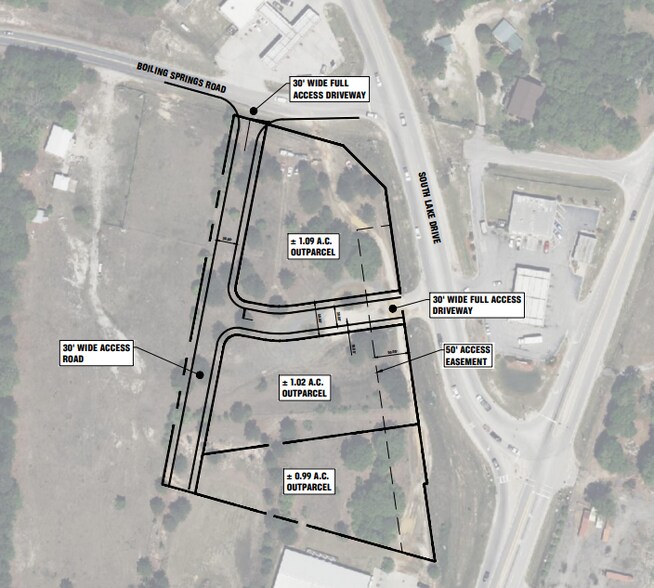 Three Outparcels available for Ground Lease or Build-to-Suit. Parcels range from 0.99 to 1.09 acres, with the option to combine the two southern pads for up to 2.01 contiguous acres. Located along a developing commercial corridor with solid traffic flow and growing residential rooftops nearby. Suitable for a range of retail, medical, or service-oriented users seeking visibility and flexibility.