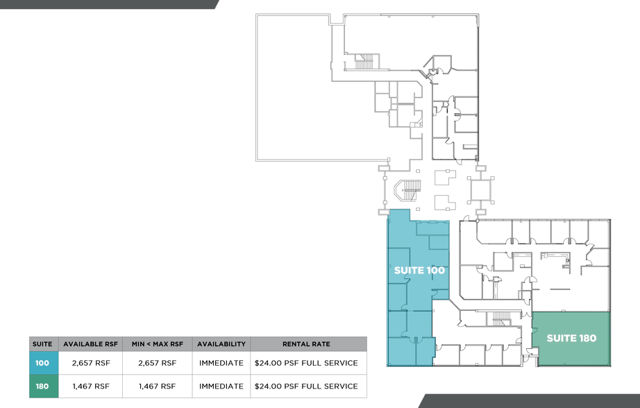 - Can be combined with additional space(s) for up to 33,418 SF of adjacent space