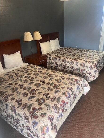 - Features include exterior corridors, on-site parking, and a 24-hour front desk.