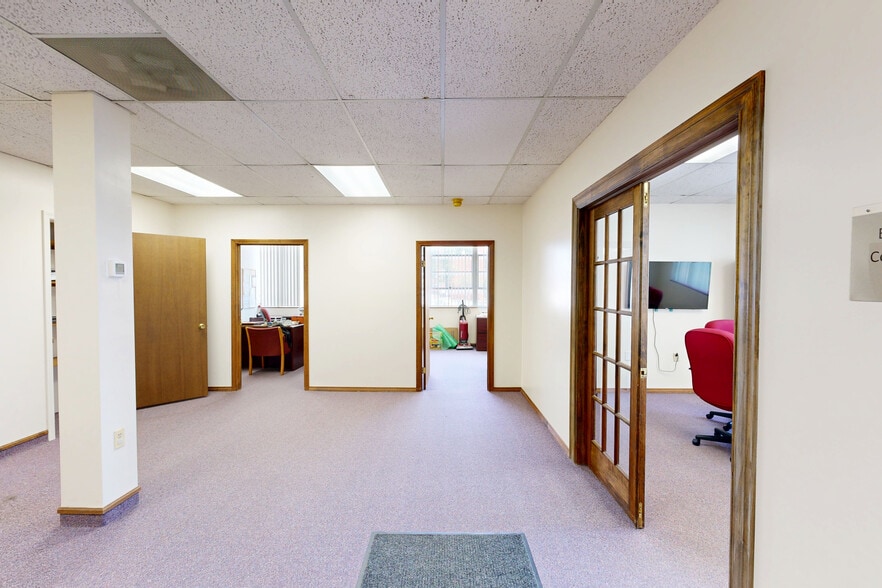 - The seven suites comprise 11 offices, two main areas, two conference rooms, one break room, private restrooms, and security cameras.
