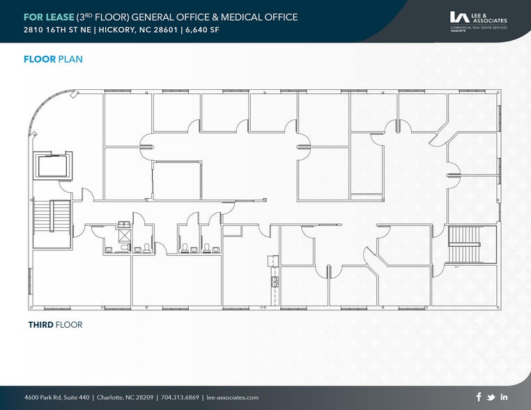 Available for immediate lease at $19.50/SF NNN, the offering includes the third floor totaling 6,640 SF. The space provides flexible demising options to suit single- or multi-tenant configurations, with elevator access and abundant natural light. The property’s Neighborhood Commercial zoning supports a variety of general office and medical uses, offering tenants a professional environment in a highly accessible Hickory submarket. Located along 16th Street NE, this property sits in a thriving medical and commercial corridor with strong traffic counts of 13,300–14,500 VPD. The site is surrounded by healthcare and senior-living facilities, including Brookdale Hickory Northeast and ChildHealth Center, PA, positioning it well for medical or wellness tenants. Nearby amenities—restaurants, pharmacies, and daily services—support staff convenience and client accessibility. Regional connectivity is excellent, with quick access to I-40 (4.5 mi / 10 min) and US-321 (4.9 mi / 11 min), linking Hickory to Charlotte (52.6 mi), Winston-Salem, and Asheville in just over an hour. Hickory’s demographic base of more than 78,000 residents within 15 minutes and its median household income exceeding $62,000 underscore the area’s stability and purchasing power.