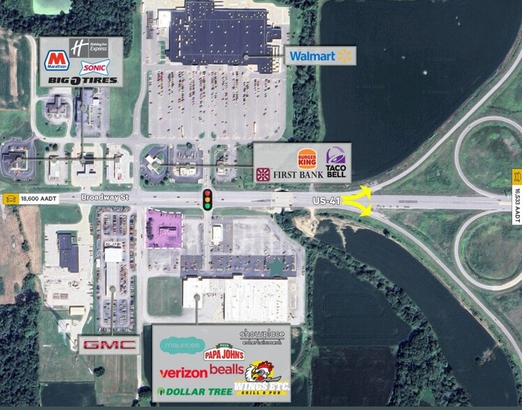 Located on a Busy Signalized Intersection ,The Bob Evans at 2825 W Broadway St in Princeton, Indiana is located in Town Fair Shopping Center across from a Walmart Supercenter on a busy signalized corner intersection with ample parking, and one block from the US 41 interchange. The property offers a promising development opportunity due to its prime location and features. Situated in a vibrant and growing community, the site is approximately 1 acre and includes a well-maintained building currently operating as a Bob Evans restaurant until 04/26. This site has excellent visibility with cross easement access and an average annual daily traffic of 18,600 on West Broadway Street and 16,533 on US-41. It is surrounded by national retailers like Walmart, GMC, Maurices, and Dollar Tree, and is ideally positioned for continued future success. This Property is available for Sale, Lease or Ground Lease, offering flexible development options to potential investors and tenants. The sale price for the entire property as-is is $1,800,000, Ground lease asking rate of $10k/month NNN and lease of the existing building is being offered at $30/SF NNN, with a desired lease term of 120 months.