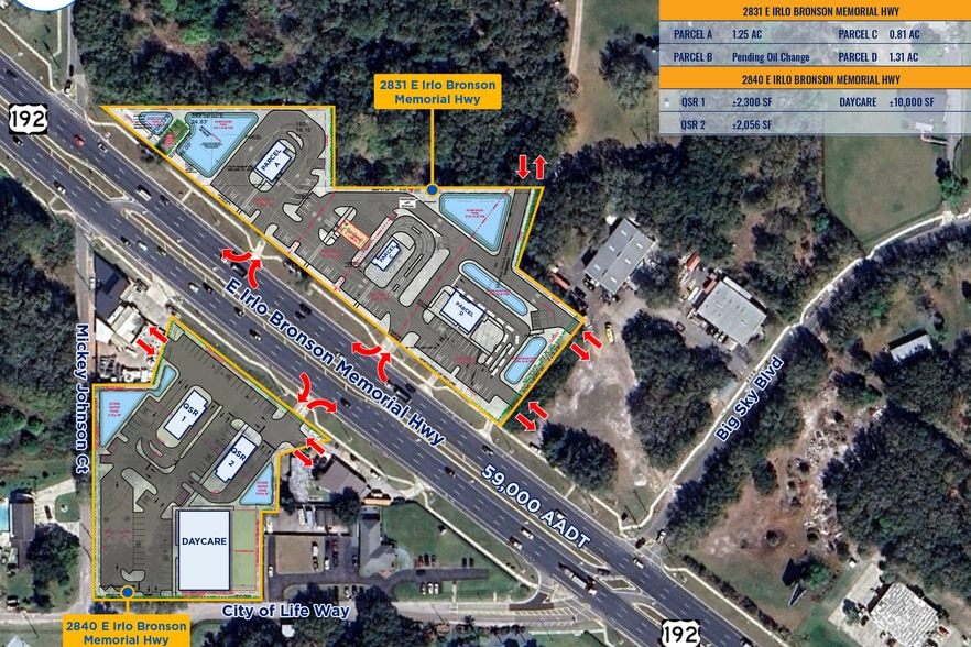 • HIghly visible outparcels on densely developed retail corridor • Excellent opportunity for QSR, Restaurant, Medical, Financial Institution, Automotive, Daycare and other users • US 192 (E Irlo Bronson Memorial Hwy) has over 59,000 AADT • Multiple access points • Area retailers include Home Depot, Publix, Marshalls, Old Navy, Hobby Lobby, Ulta, Five Below, Petsmart, Ross, Zaxby’s, Pollo Campero, Wal-Mart, Chick-fil-A, Aldi, Starbucks, Chipotle and a plethora of others.