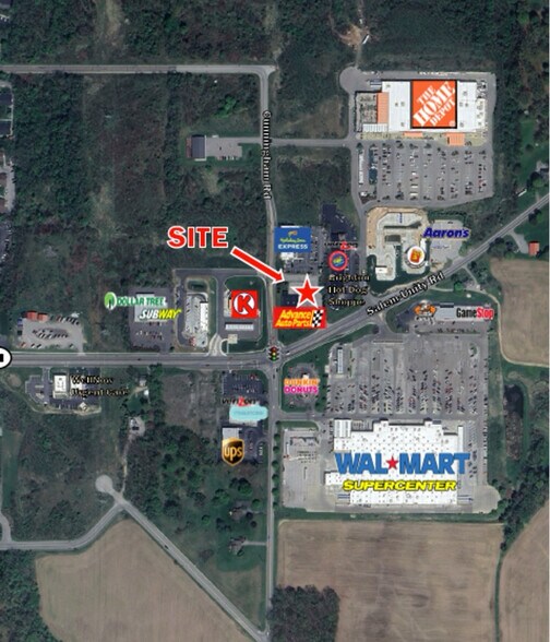 .75 acre prime retail site available at 2852 E State Street in Salem, Ohio, located at a high-visibility, signalized hard corner directly across from the Walmart Supercenter. Land available for sale or build-to-suit lease with 1,600–1,800 SF vanilla shell spaces offered at $35.00/SF NNN. Shared with Advance Auto Parts and benefiting from traffic counts exceeding 22,000 vehicles per day along E State Street (State Route 14), this site is ideally positioned for high-traffic retail, medical, or service users. No drive-thru permitted. Outstanding exposure in one of Salem’s busiest commercial corridors!