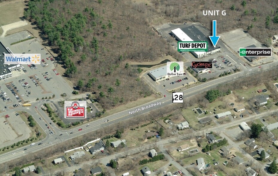 1,700± SF retail unit with a large window line is available in Building 1 or a retail plaza consisting of two buildings. Unit G is the former home of New England Ketamine and consists of a reception space, 4 private treatment rooms, 1 restroom, and a kitchen. Building 1 is home to Granz Turf Depot and USA Chicken and Biscuit, Building 2 is home to Cycles Etc. Signage is available on the building facade, and a pylon sign is located on busy Route 28/N Broadway with 11,193± AADT per NHDOT 2025. Situated on a bustling retail corridor with neighboring businesses including Canobie Lake Park, The Colosseum, Dollar Tree, Domino’s Pizza, Dunkin’, Walmart, McKinnon’s Market, and more. Just minutes from I-93 via Exit 2 or 3, less than 10 minutes to the Mall at Rockingham Park, and nearby Tuscan Village.