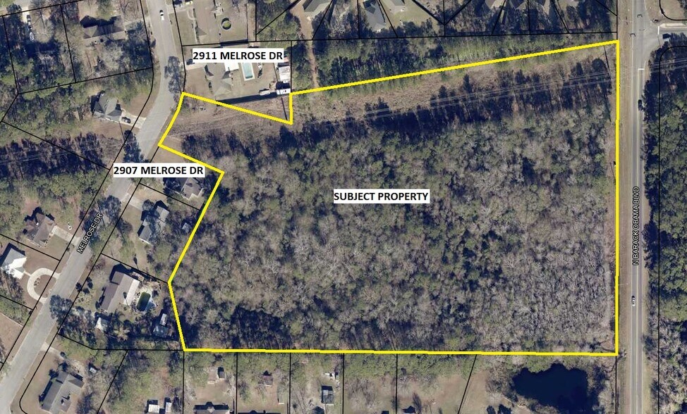 Attention developers. 9.679 acres, great development site. Priced at only $20,147/acre. All City utilities at site. Fifteen R-10-zoned lots allowed per approvable, attached concept subdivision plan. Or get higher-density single- or multi-family development (up to 18 units/acre) with rezoning. Frontage and access: 105' on Melrose Dr west side; 589' on Barack Obama Blvd east side. Some wetlands on site but plenty of usable land to build around. Density based on full 9.679-acre site. Plat attached.