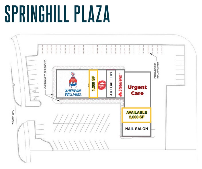 | Total Space Available | 3,200 SF | Frontage | 194’ on Walton Blvd |