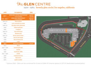 Join The Glen Centre, an irreplaceable trophy daily needs retail center nestled in the hills of Bel Air, high above Los Angeles. Jam packed on a daily basis with customers boasting discretionary spending habits to dream of (with AHHI of over $200,000 within a 1 mile radius), average unit volumes for retailers and restaurants at the Centre are beyond enviable. While there is certainly a captive Bel Air audience that contributes to the nearly 1,000,000 annual visits to the Centre, Placer data also indicates that 70% of visits originate more or less equally from Beverly Hills and Westwood in the LA basin as they do from Sherman Oaks and Studio City in the valley. The charming neighborhood vibe of this uniquely situated property, well away from the hustle and bustle of the city streets below, means that consumers from both sides of the hill routinely go out of their way to visit us. We look forward to hosting your business at The Glen Centre.