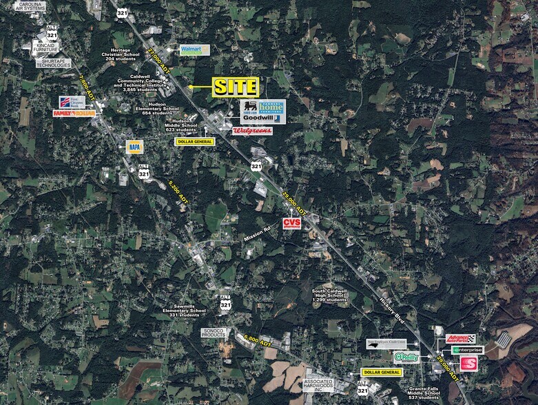 - Strategically located between Hickory and Lenoir directly across the street from Caldwell Community College