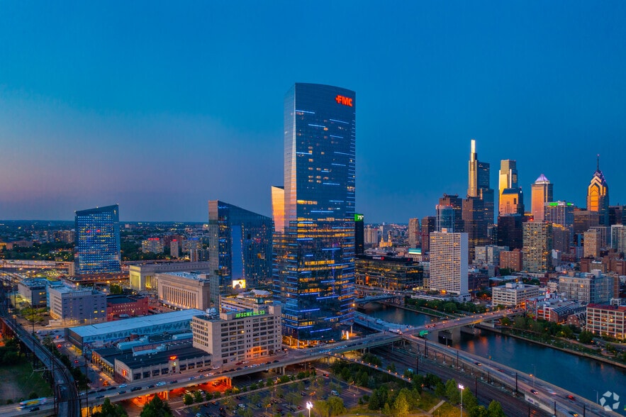 FMC Tower at Cira Centre South redefines the Philadelphia skyline with its bold vision and integrated vertical neighborhood concept. Rising 725 feet above University City, this 49-story mixed-use tower offers a dynamic blend of office, residential, retail, and amenity spaces. Designed by world-renowned Pelli Clarke Pelli Architects, the building combines iconic architecture with advanced engineering and LEED-based sustainability. Office tenants benefit from expansive 25,000 SF floor plates, 10’ ceiling heights, and floor-to-ceiling windows that flood workspaces with natural light and panoramic views. The flexible layouts support brand-defining environments and culture-enhancing design. The building’s infrastructure includes high-performance HVAC systems, dual-feed electrical service, and a robust security framework with 24/7 staffing and destination-controlled elevators. Amenities are unmatched: a 25,000 SF amenity floor features a 72’ swimming pool, media screening room, business center, and spa. The sky deck offers fire pits and water features with stunning city views, while the wellness center includes Technogym equipment and studio space. Tenants also enjoy a Michelin-awarded restaurant, concierge service, valet drop-off, and complimentary shuttle looping through Market Street and Walnut Street corridors. Strategically located at the gateway to University City, FMC Tower offers superior accessibility to 30th Street Station, I-76, I-676, Schuylkill River Trail, and Philadelphia International Airport. The property is part of a master-planned innovation district, adjacent to Schuylkill Yards and the 30th Street Station District Plan.