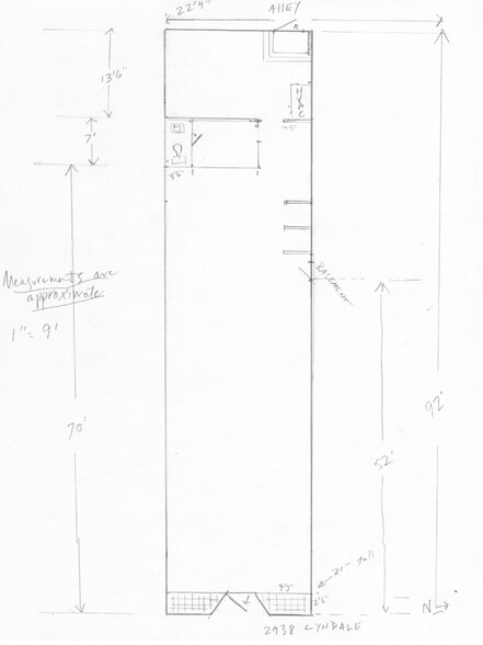 - Wide open space (@ 22.5’ x 90’) with one restroom
