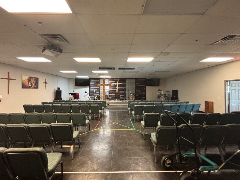 This spacious commercial condo offers over 5,846 square feet of flexible space, including more than four private offices, three dedicated meeting rooms, and a full kitchen. The versatile layout has previously accommodated an office, a church, and a non-profit organization, making it suitable for a variety of uses. The current main area serves as a congregation room and features an elevated stage, ideal for productions, presentations, or large gatherings. With ample parking and easy showing arrangements, this property is perfectly suited for businesses or organizations seeking a functional and adaptable environment.
