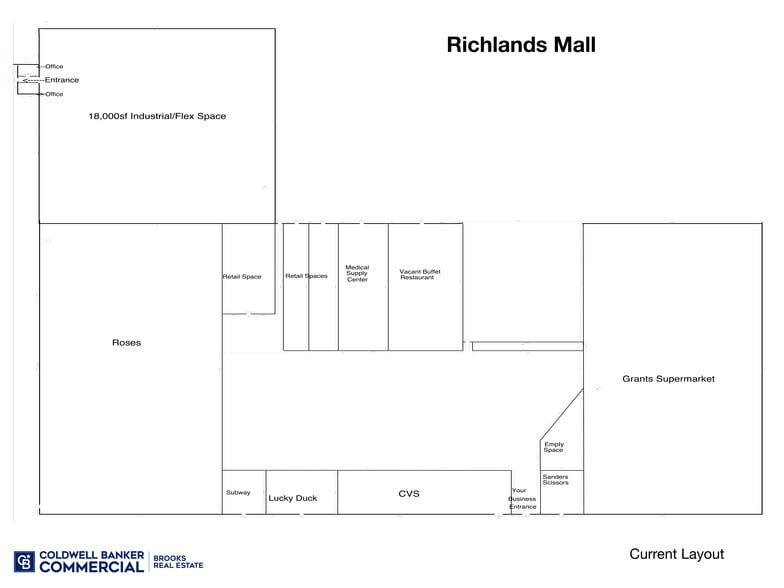 This 8,040 SF retail unit offers a flexible layout (see Concept Plan) in a prime location between major retailers along busy Rt. 460, ensuring strong visibility and consistent foot traffic. Positioned at the building’s front center and sharing the main entrance awning with CVS, Unit C is ideal for national brands like Five Below, PopShelf, American Eagle, Bath & Body Works, or for private retailers seeking a customizable storefront. Signage Opportunities: Front awning and potential pylon enhance brand exposure. Tenant Incentives: Landlord offers rent abatement to offset build-out costs. Prime Commercial Hub: Join a thriving retail environment and establish your business in one of Richlands’ most visible locations.