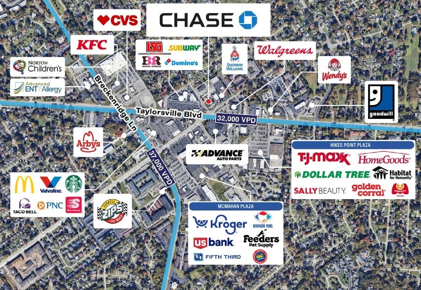 The 4,789-square foot property is situated just off Taylorsville Boulevard (32,000 VPD) and Breckenridge Lane (37,000 VPD) with convenient access to Interstate 264 (166,000 VPD) and Interstate 64 (128,000 VPD) further amplifying the site’s regional accessibility. The surrounding area comprises a dense retail corridor anchored by a strong mix of nationally recognized tenants including Kroger, TJ Maxx, HomeGoods, Starbucks, McDonald’s, Walgreens, CVS, and Goodwill, among many others. Nearby demand drivers such as Norton Children’s Medical Group and Advanced ENT generate consistent daily traffic to the immediate trade area. The property is further supported by a robust consumer base of over 249,000 residents within a five-mile radius, with average household incomes exceeding $106,000.