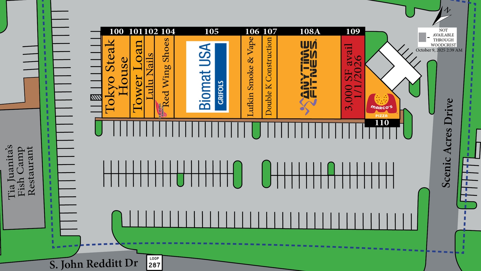 The Lufkin Palms Shopping Center is an approx. 32,000 SF retail center in Lufkin, Texas near U.S. 59. Lufkin Palms is surrounded by high traffic, market leading retailers and restaurants, which include: Best Buy, Target, Home Depot, Lufkin Mall, and numerous other traffic generators. Commercial suites at this center are available to lease for anything from traditional retail storefronts and restaurants to offices to medical or other professional service providers. Woodcrest Capital welcomes first time and franchise businesses to its centers with easy-to-read leases and flexible terms. Woodcrest is also sufficiently sophisticated to please the largest of national credit tenants. As a family-owned business with over 40 years in commercial real estate, Woodcrest owns and operates everything from Class A centers in the busiest neighborhoods to troubled centers it’s rehabilitating in struggling rural communities. Give us a call today to find the right location for your business as we usually have multiple retail opportunities in the immediate area!