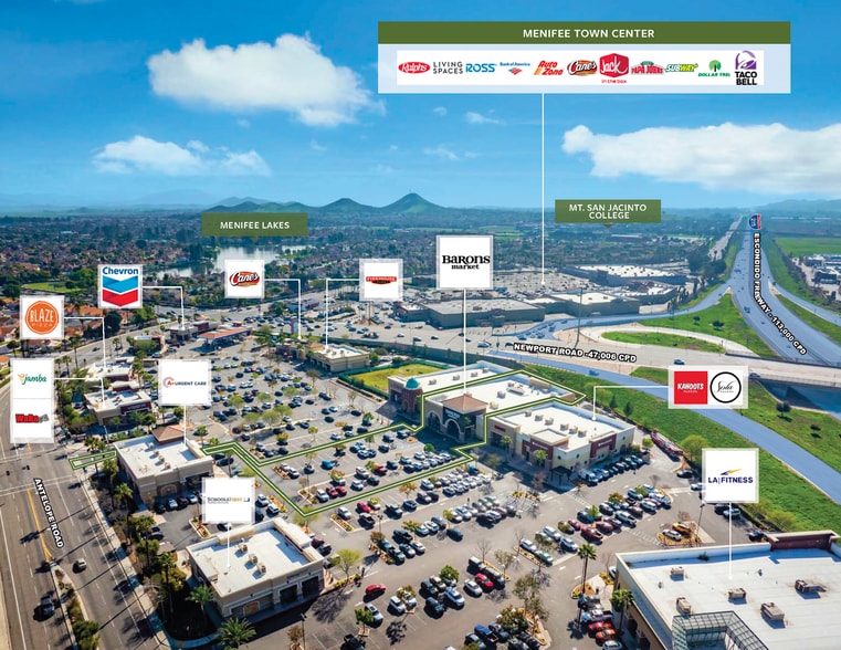 - Daily-needs anchor with recession-resistant traffic, strategically positioned in Menifee’s primary retail corridor and surrounded by expanding housing