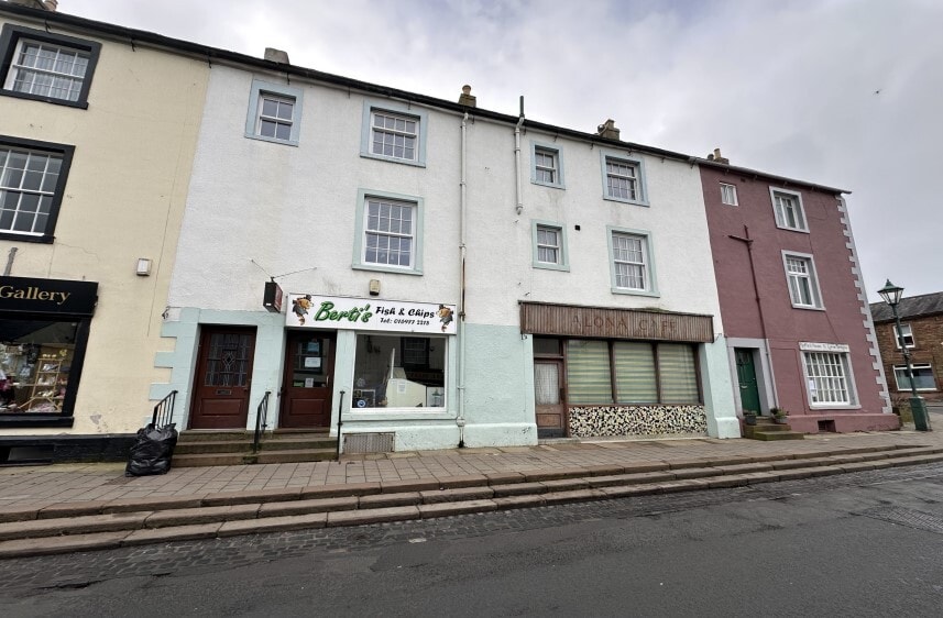 A Grade II listed, four storey, town centre property; with the ground floor consisting of a fish and chip shop and former cafe. The adjoining upper floor residential space is currently used as two adjacent 3 bedroom flats. There is Gas central heating fitted across the whole property. The utilities/services into the property will likely require some modernisation.