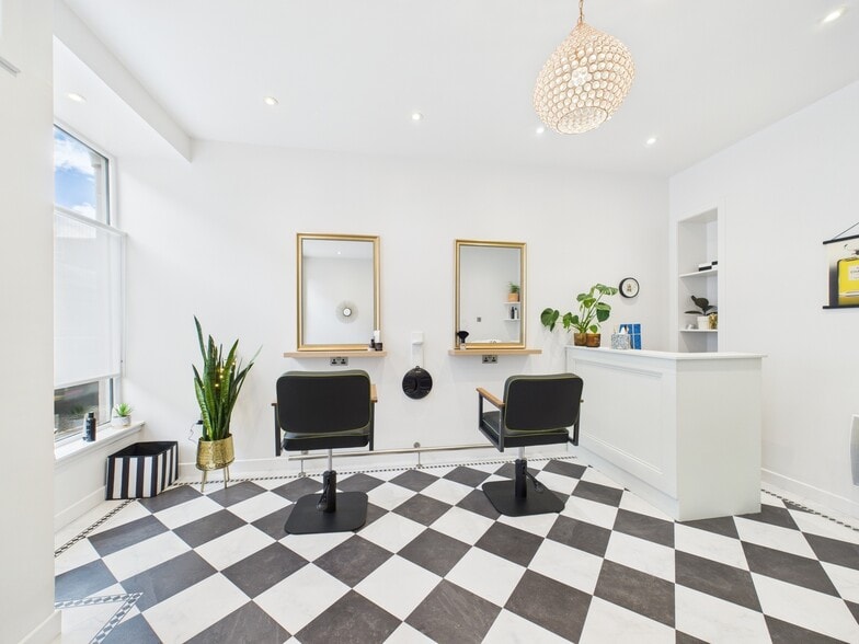 Fully fitted ground floor hairdressing salon with large glazed frontage, recently refurbished to a high specification fit-out. Prominent town centre trading location. Qualifies for 100% rates relief. Rent and Sale Price available on application. VAT free property.