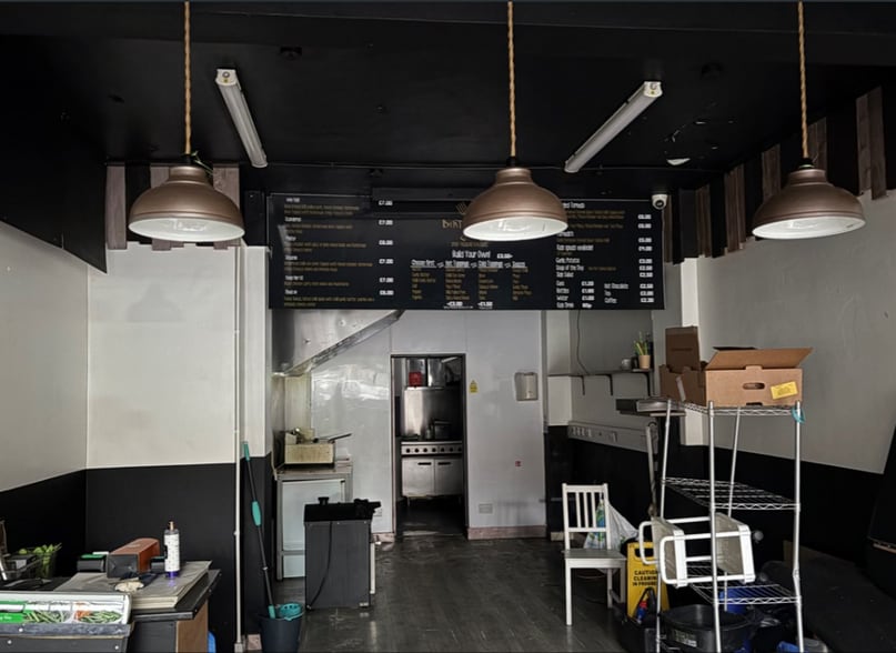 The property comprises a spacious open plan ground floor suitable for a café premises with a kitchen area, toilet facilities and a small store to the rear of the building. The property is finished to include plastered and painted walls, tiled flooring throughout, exposed ceiling with florescent lighting and an electric roller shutter door.