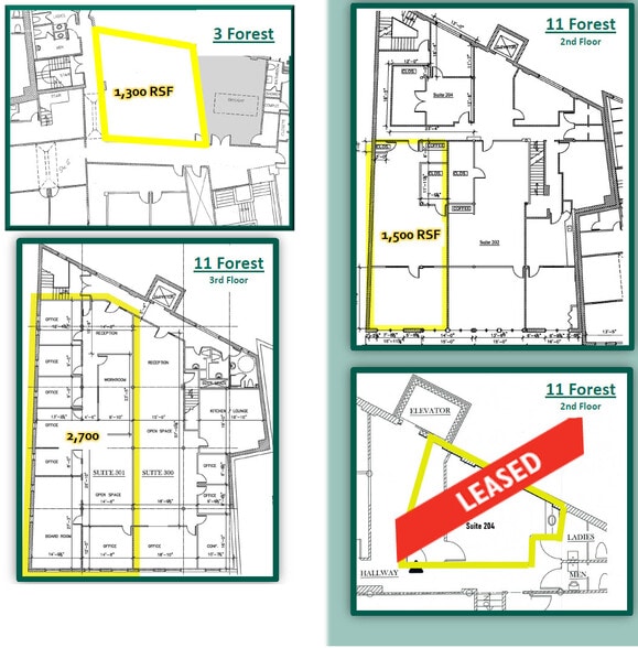 | 2nd Floor, Ste 6 | 1,300 SF | Negotiable | Upon Request Upon Request Upon Request Upon Request | Office | Full Build-Out | Now |