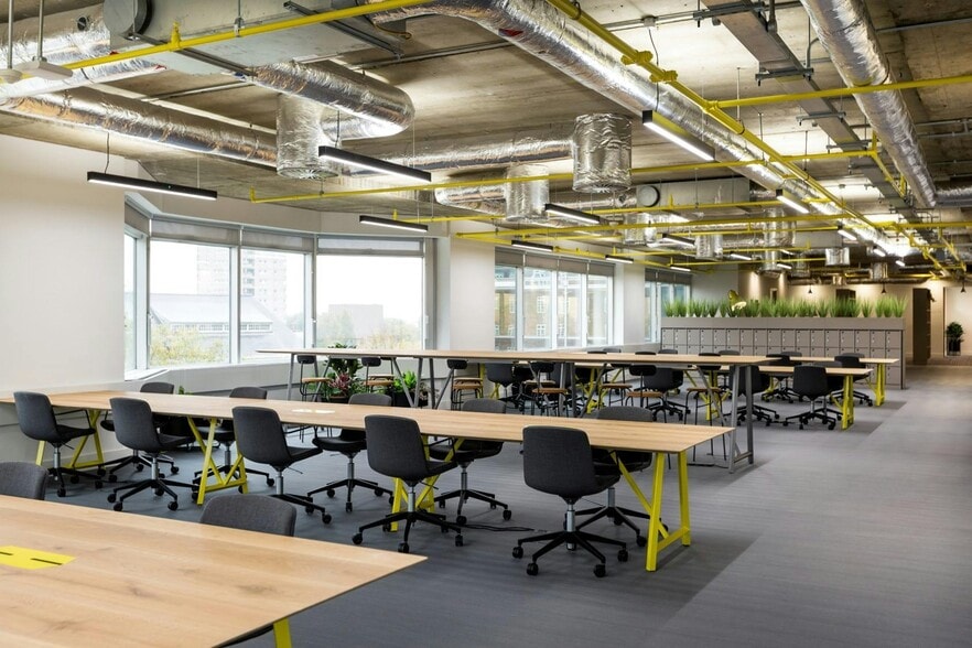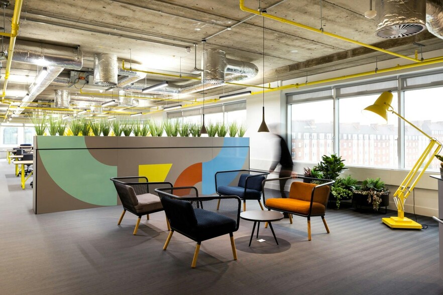 9,750 sq ft CAT A: £89,800 pcm {5,000 sq ft: £46,000 pcm} {4,750 sq ft: £43,800 pcm} Romulus has comprehensively repositioned the building ,which now offers a large reception space, incorporating a new café, new cycle storage and changing facilities. There is a range of availability ranging from small suites available on a fitted out basis to whole refurbished floors.