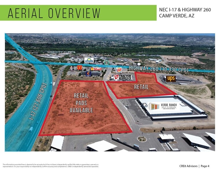 • Retail Pads, Industrial, Offfice & Multi-Family available for Sale or Lease! • Located at the major intersection in Campe Verde at Interstate 17 (27,606 CPD) & Highway 260 (10,330 CPD)