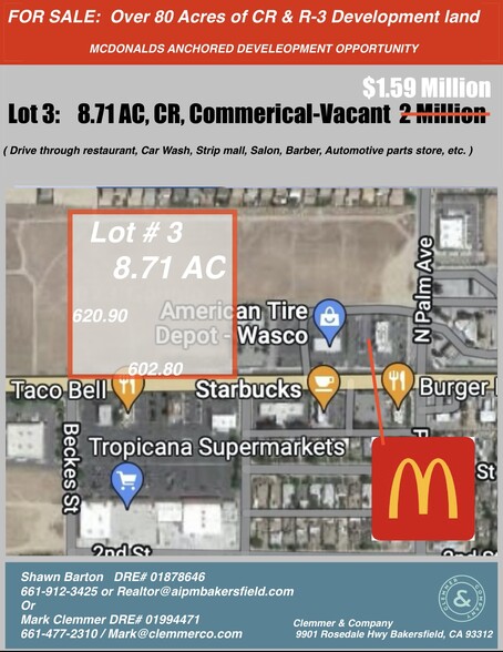Located in the heart of Wasco, this prime development boasts an impressive scope of possibilities, featuring a big box store as its central attraction, surrounded by smaller shopping centers, a luxury hotel site, and a premium high- density multi-family residence.
