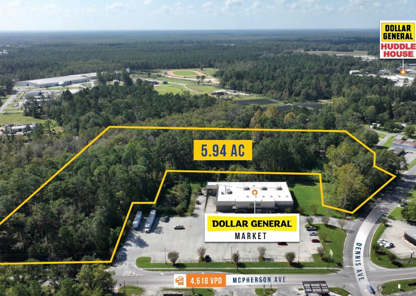 Wooded lot surrounding Dollar General in Nashville, GA on 5.94 acres.