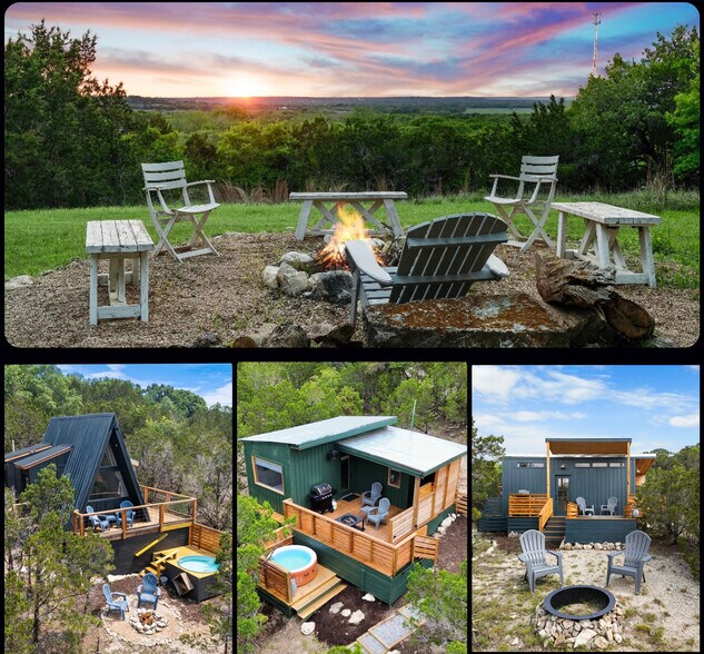 Perched atop a private, winding drive, this distinguished 19th-century farmhouse commands sweeping views. A truly singular estate, it offers not only timeless beauty and unmatched privacy, but also a compelling investment opportunity with multiple income-producing residences already in place. Whether envisioned as a personal sanctuary or a legacy property with built-in cash flow, this residence provides an extraordinary backdrop for opportunity. The main house spans 3,200 square feet with four bedrooms and three bathrooms, blending historic character with thoughtful updates. The primary suite features heated bathroom floors, a soaking tub, and a custom arched tile shower that adds a spa-like feel. In the kitchen, white oak cabinetry, upgraded appliances, 48 inch range, and abundant natural light create a warm, functional space—framed by views of the surrounding hill country. Tucked into the trees are three custom-built tiny homes, each private and thoughtfully designed. These established short-term rentals perform well above market, offering consistent returns and future upside. With strong rental history and room to expand, the potential here is significant. The 10+ acre property includes mature oaks, native wildflowers, and open space for additional development—be it more cabins, shared amenities, or personal use. Additional features include an RV hookup, a barn, three storage sheds, a greenhouse, and a fenced irrigated garden. Outdoor living is central to the property’s charm, with a wraparound porch, a spacious back deck, and a fire pit ideal for enjoying peaceful evenings. Whether you're seeking a quiet family escape, a high-end rental retreat, or a long-term investment with character and flexibility, this property offers a rare opportunity to own something truly special.