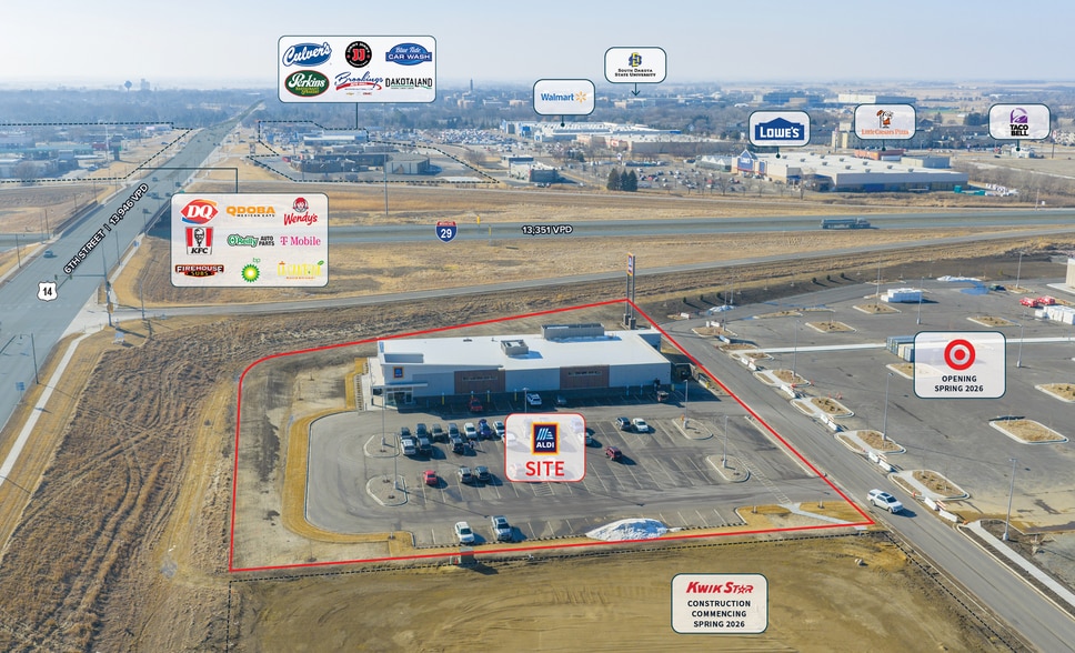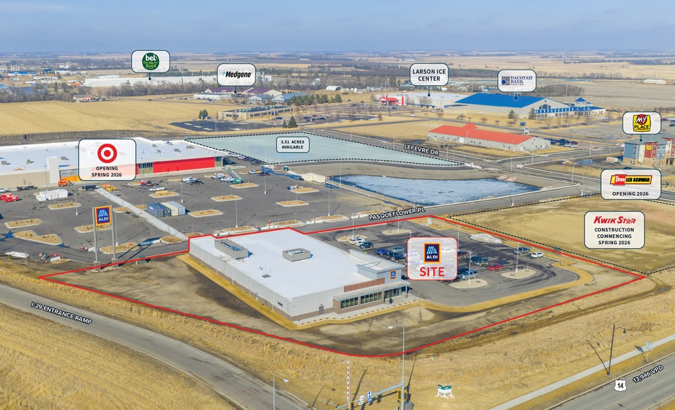 Brookings represents an exceptional market for grocery retail, with ALDI enjoying prime positioning as the first retailer to open at Brookings Marketplace, a brand-new 18.53-acre Target-anchored development at the intersection of US Highway 14 and I-29. The store benefits from exceptional visibility and access along one of South Dakota's primary north-south interstate corridors, with over 13,000 vehicles passing the site daily and direct frontage on both regional and local traffic patterns. Target, along with Kwik Star and Les Schwab Tire Center, solidify this location as the region's premier retail hub.