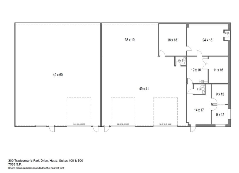Building 300: - Suite 100+500: 7,538 SF; Available July 1, 2026; Reception, plus 4 offices, plus bullpen area, plus breakroom. 2 restrooms. Three (3) 14’ by 16’ overhead doors. Building 302: - Suite 100: 6,032 SF; Available Now; Lease space has reception, plus two (2) offices and restroom. Remainder of space is warehouse. Two (2) 14' x 16'3" overhead doors. - Suite 1000: 2,976 SF; Open office area in entryway. 1 office and restroom. One 14' x 16'3" overhead door. HVAC warehouse with 3 phase power. - Suite 100 and Suite 1000 can be combined for 9,008 SF total. Located just off US HWY 79 between Round Rock and Hutto. 6 miles east of IH-35 and 1 mile west of SH 130.